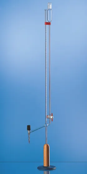 Бюретите Микро са изработени от боросиликатно стъкло, синя градуировка и в комплект със статив.