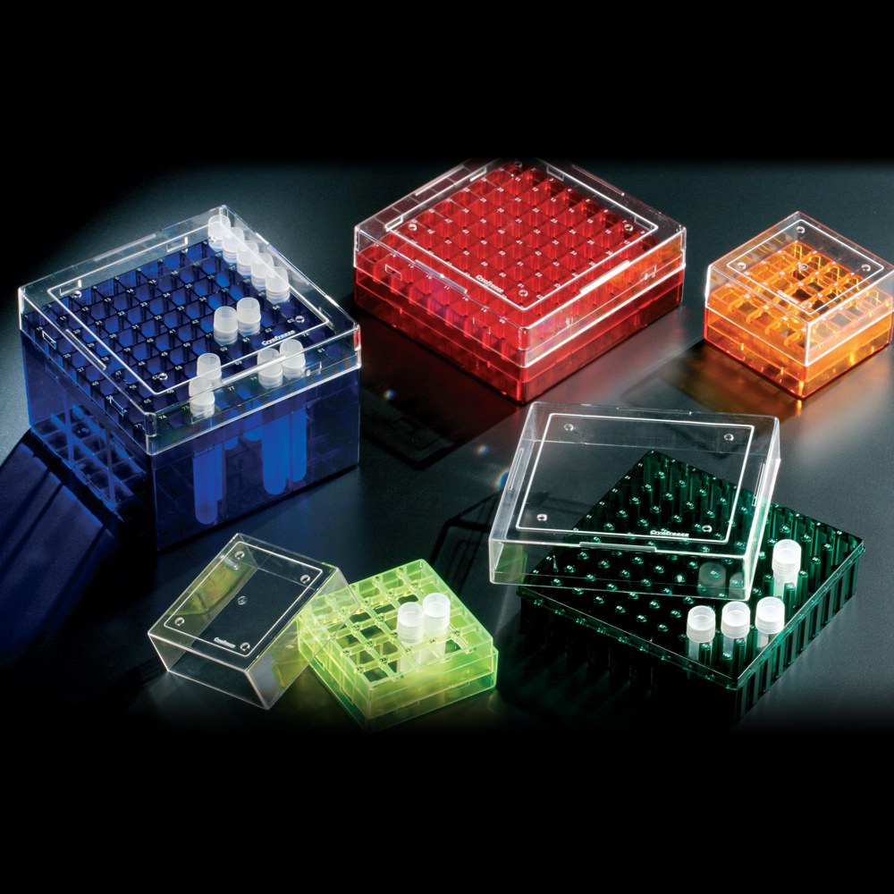 Тези стелажи осигуряват съхранение при ултра ниска температура (от –196 ºC до 121 ºC), като побират 2 или 5 ml криоепруветки (в зависимост от модела). Съвместими с други системи за съхранение, те могат да бъдат стерилизирани чрез автоклавни протоколи. Могат да бъдат потопени и в течен азот, като дизайнът им осигурява минимални проблеми с излишната течност при отстраняването им.