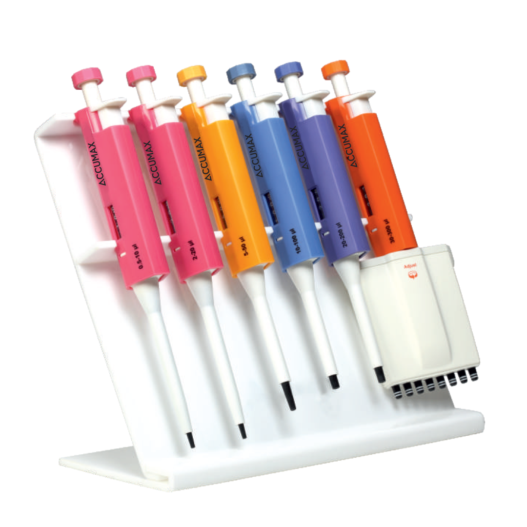 Стойката за микропипети Accumax с 4 или 6 гнезда е проектирана за сигурно задържане и организиране на микропипети в лабораторна обстановка. Обикновено е изработена от издръжливи материали като пластмаса или акрил, което помага за предотвратяване на повреда на пипетите и осигурява стабилност.