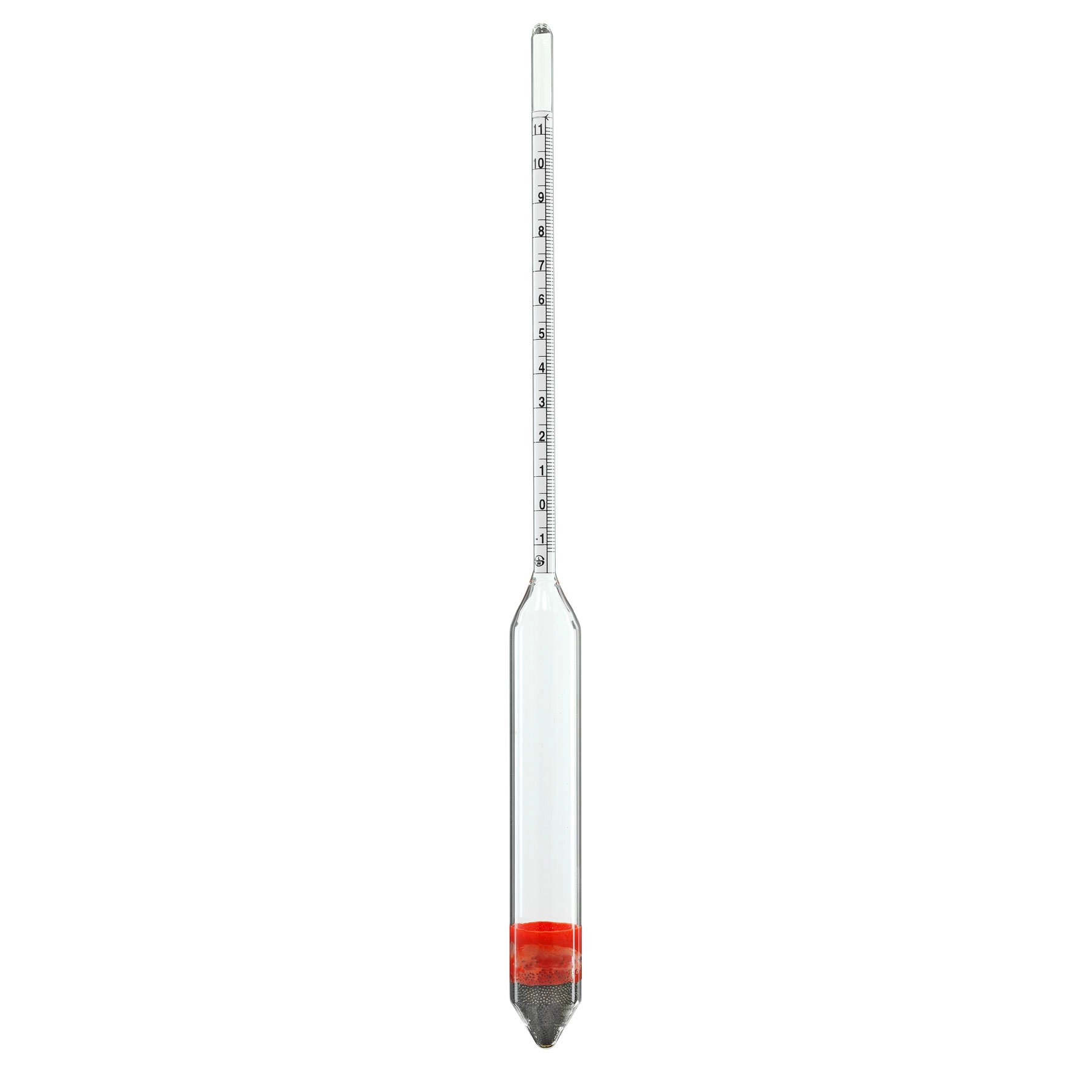 ±1 деление на скалата. Термометър вътре в корпуса на хидрометъра, кръгла капилярка, пълнеж: парафиново масло (Pet). Доставя се в прозрачна пластмасова опаковка.