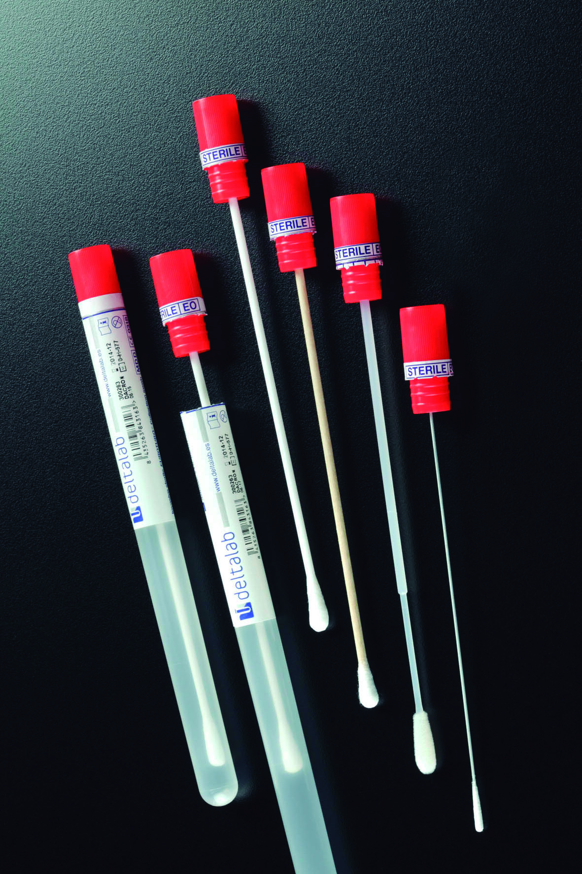 Sterile dry swabs supplied in shockproof round bottom polypropylene tube, with a label sealing the cap. Dimensions of tube: Ø 13 x 165 mm. Sterilised by ethylene oxide.